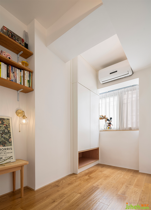 窗户添加了拱门元素,让平平无奇的小空间变的有趣起来。