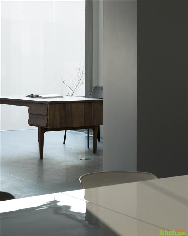 在室内空间结构的改变下,光的融合与传递也产生了非常规的变化。自然光透过玻璃、体块照射进空间内,简单的肌理表现,打造一个可以慢下来的空间环境。辅以“见光不见源”的理念使用智能灯光,让光影的转变更为鲜活,让结构与层次变得更加丰富。办公室设计