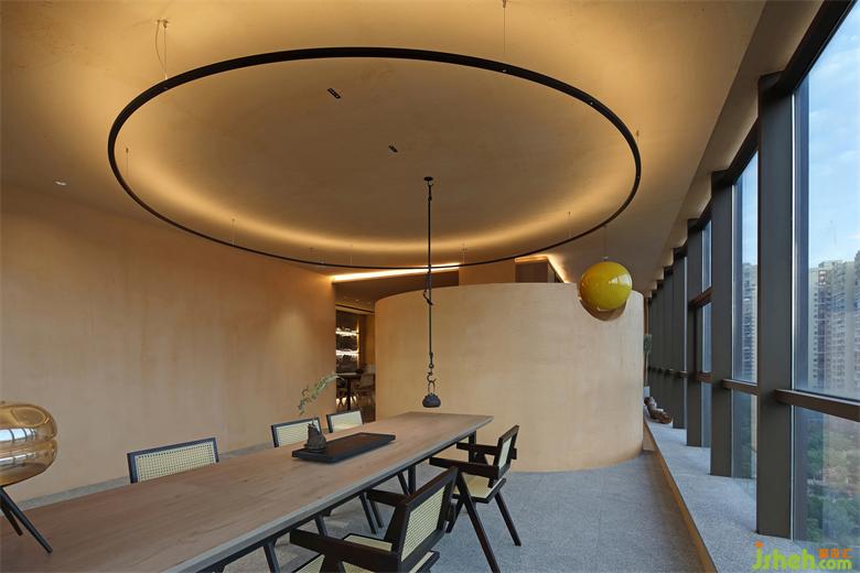 The curved walls interweave, the transparent and semi-transparent space increases the“Breathability”of the space, creates the ambiguous and soft space boundary, the arc-shaped space encircles the virtual space to melt the tension of the space, and increases the interest of the space. Reception space curve encircles the form, not like a straight line as plain, not like a straight line as stiff, have some soft but free and easy, humble but uninhibited feeling.