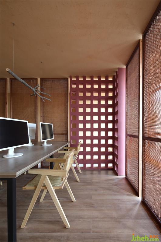 弧形的墙体相互交织,通透半通透的空间增加了空间的”透气性“,办公室设计创造出了暧昧柔和的空间边界,弧形的空间围合虚化掉了空间的紧张感,增添了空间的趣味性。接待空间曲线的围合形式,不像直线般平淡,也不像折线般生硬,有一些柔美却洒脱,谦逊却不羁的感觉.