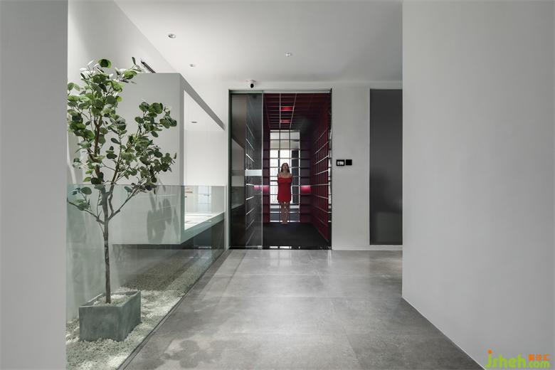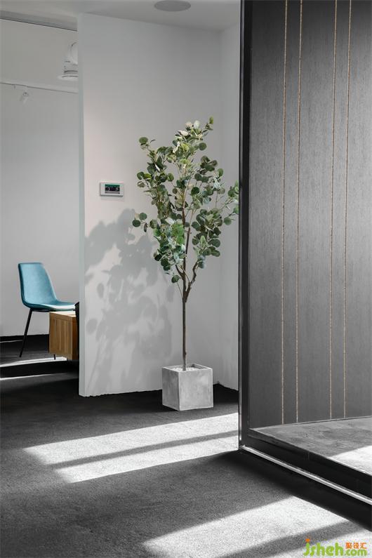 灯光下的“木头”,白色乳胶漆、灯光、绿植、白色鹅卵石、杉木板。简单到再简单不过的“普通材料”经过描绘,组合。以光影艺术,做没有艺术的设计。