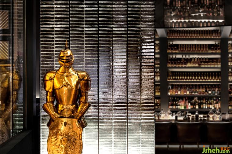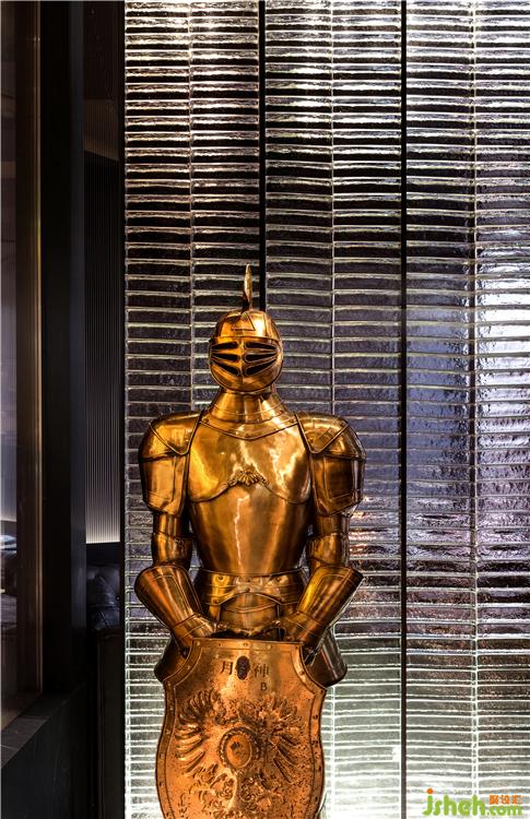 中世纪的罗马武士摆件对于空间而言,是营造视觉记忆的第一触点。其厚重的流线型体与水晶砖作为空间光影形态的衬托,表现的是冷酷与温度的和谐,与并将幽默、神秘以及梦想等元素融入空间的建造体系中。