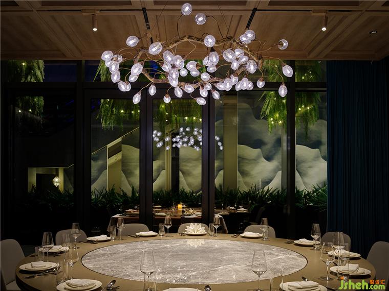 2020年初,融汇国际大厦内,经营多品类菜式的龙庭酒家与写字楼内斐驰办公同时完工投入使用,餐厅与斐驰办公均由大厦投资方开发,WIT方夏设计受托完成跨地下两层的餐厅空间设计。