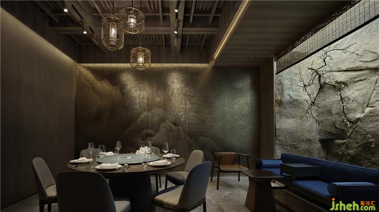 相似的自然感营造在各个包房也有鲜明的体现,山石自然、不拘手法和介质,消弭了写字楼坚硬的都市感。