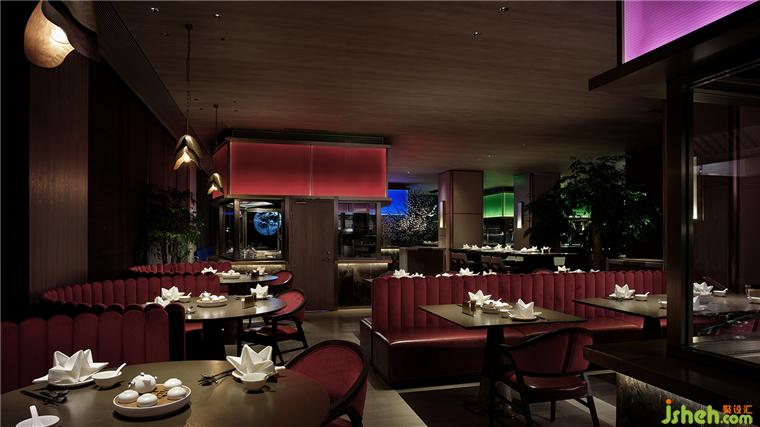 首先,因为餐厅60%左右的经营面积位于传统概念中的B2层。在设计解决中,我们在中庭做了一个下沉广场直接通到B2层,龙庭酒家设计在这样情况下B2层很房间是没有自然采光的,怎么让客人在就餐时能够忽略这个位置问题,这是第一个难点。