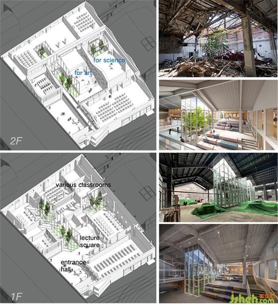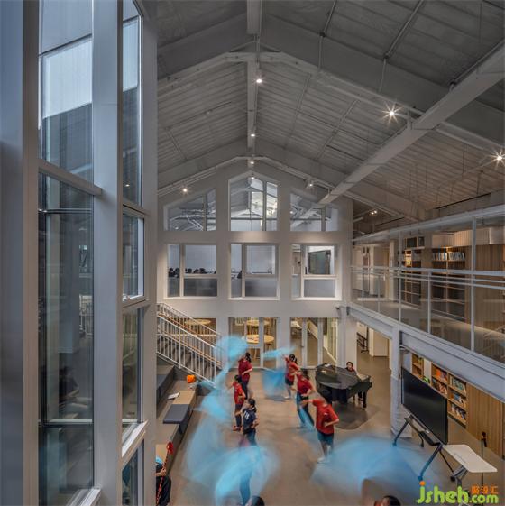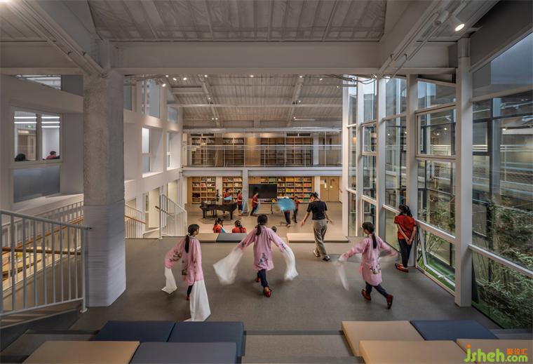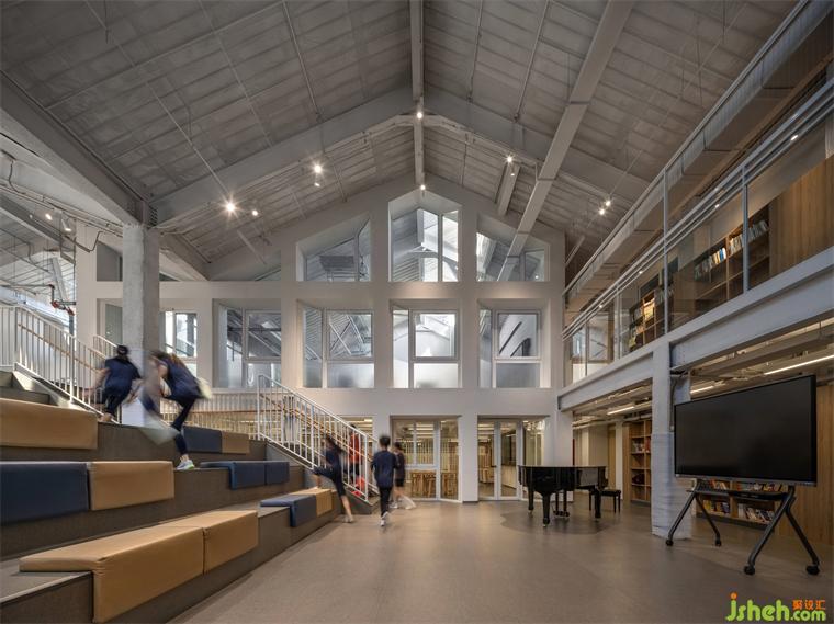 学校装修设计综合楼在改造成教学空间之前,曾经是造纸厂厂房,也一度做菜市场使用。历史保护街区的城市肌理在此得以保留,也为正泽学校的名校气质找到与之契合的城市建筑文脉基底。