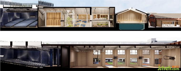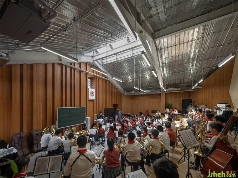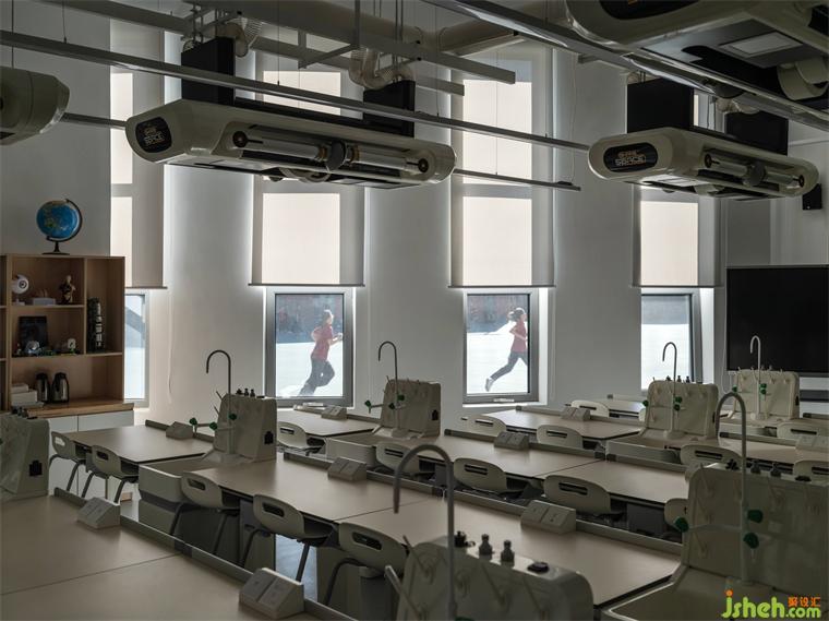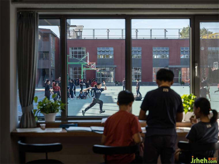 教室空间的设计以“适于学生开展各种能动、自主的学习活动、少教多学”为主要目标,仓库打开条形窗后,灯光与自然天光照进教室,这在高密度的都市校舍中显得格外珍贵。