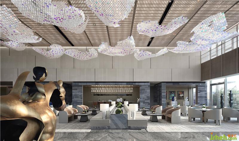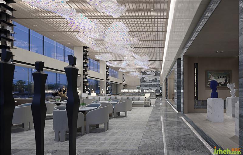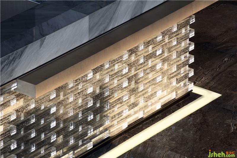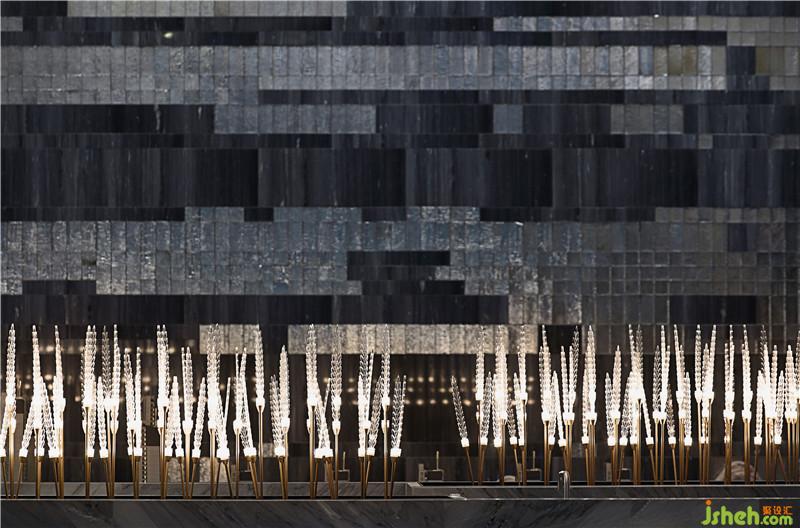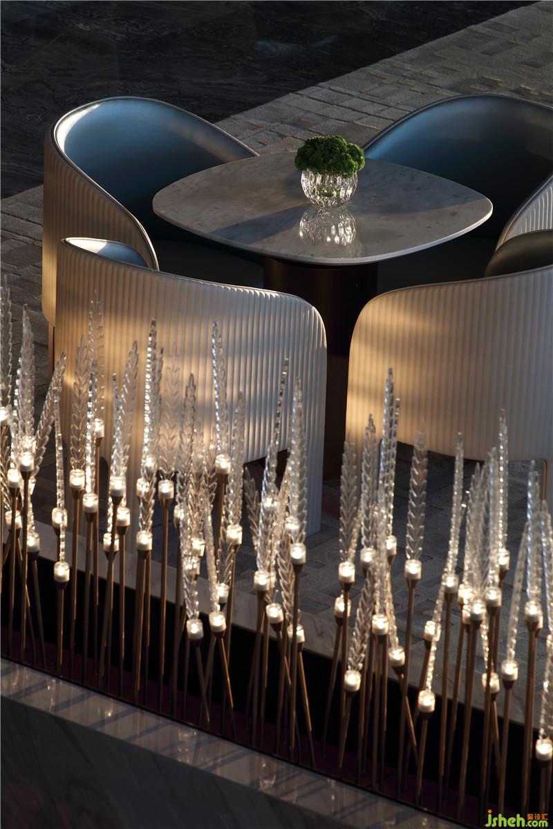 另外,设计师还在水吧区采用“芦苇”形状的灯具,空间中大部分的情景采用了“以形化形,层层递进”的表现手法,通过灯具等一系列具有水乡气韵的具象实物,将艺术形式落实到空间的各个角落。