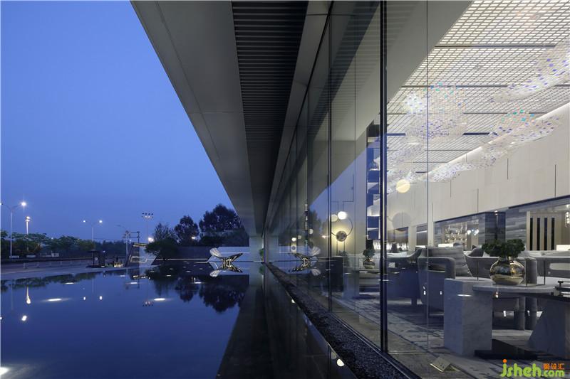 设计师同时也强调室外景观与室内空间的关系,透过巨大的落地玻璃,设计融入远处的青山和白水,燕鸟在这方天地转圜翱翔。室内室外,舍弃浮华与喧嚣,重归天地与自然。