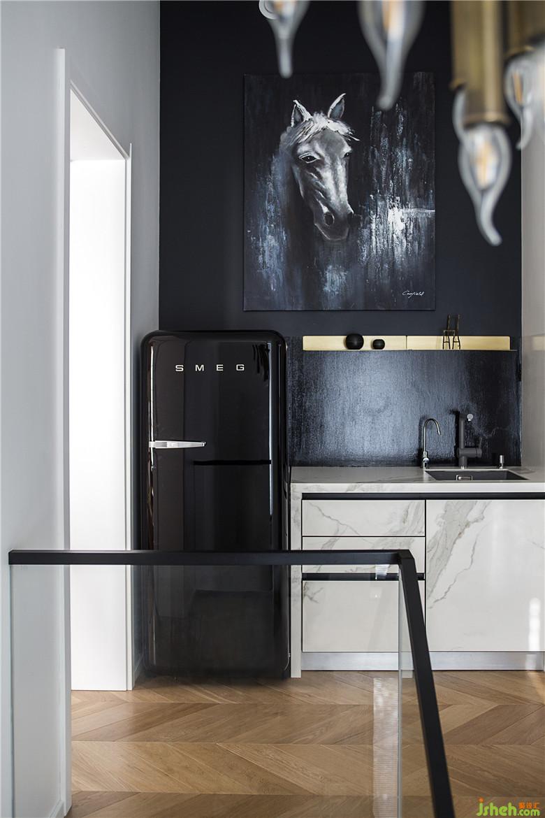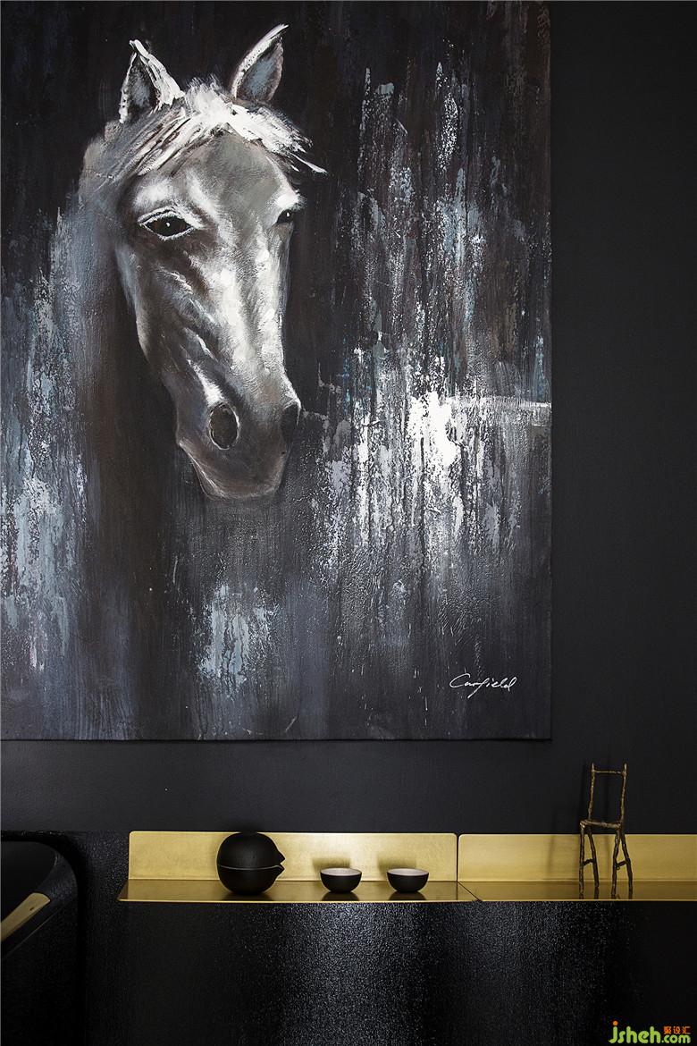 黑色马匹,用黑色琥珀漆装饰墙作画框,好像是长在墙上的艺术品。关上门,外面是潮流,家中是真实自我。男女主人的起居生活空间,包括主卧室、卫生间、衣帽间以及一个日式和室,此外,主人卧室保留露台区,以享受观景品茶乐趣。