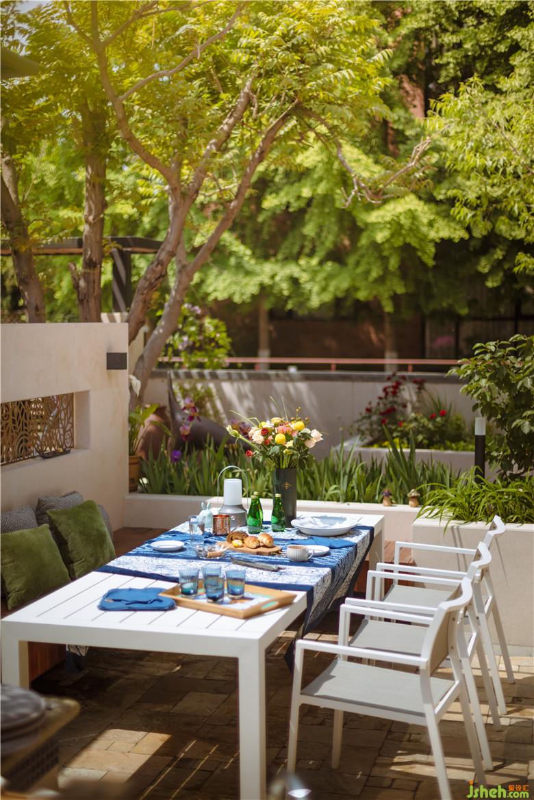 园中植物南北西三面环抱双拼别墅,无论何地,都觉身置自然裹挟之中。徐徐晚风时,也能享受属于当下的浪漫与惬意。
