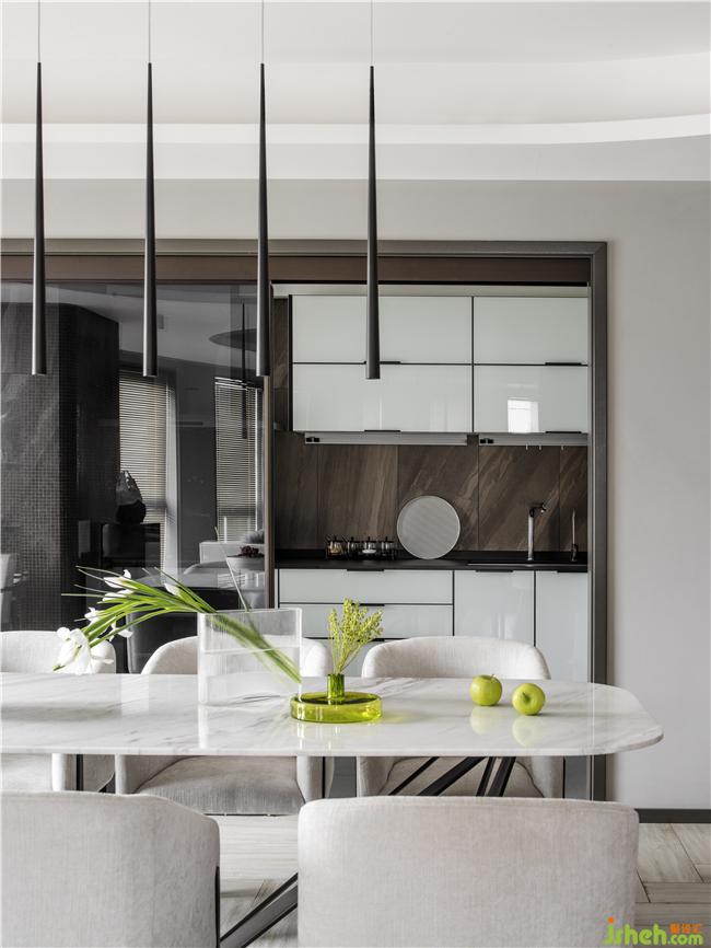 2、跳出思维定势,顺应原始建筑结构,把空间布置成扇形。弧线增强空间流动感的同时,也把所有房间串联起来, 扇形结构从生而有之的缺陷摇身一变成为亮点和看点,甚至多了几分浪漫感觉,实现了让劣势变优势这样「Magic」的可能。