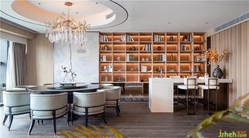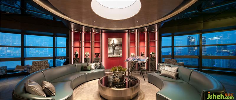 在这个项目的设计中,我们一直在寻求不被形式所界定的风格。同时,我们也认为对于高净值人群而言,获得身份认同感与精神归属感的体验互动才是精准化营销。故在集商务、阅读、娱乐与休闲功能为一体的行政酒廊区域,我们以图书室为主题概念,特设阅读墙来展现企业和企业家精神层面的内涵力量,打造思想交流与碰撞的理想地。同时天花以灰镜做顶,在高度有限的空间里以达视觉通高效果,加深空间体验感。红色背景墙的植入,是热情承载别有风致的现代美学意涵,而休闲区里可自由组合的圆形沙发,则给予空间更多的可能性。设计公司