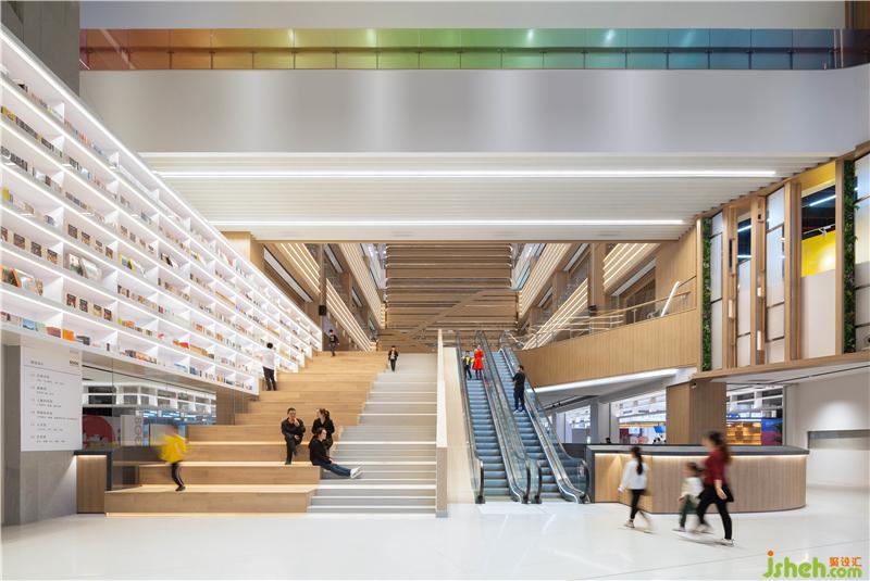 作为深圳的第六座书城——书城龙华城,总建筑面积约4.6万平方米,是集文化阅读、创意设计、休闲娱乐、教育培训、商业服务于一体的公共文化生活中心和文化地标式建筑。