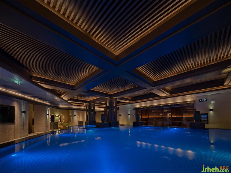穿过沉静的中庭,原木色与咖啡色的色调是属于男宾的区间。水疗设计顺承了船舱式结构的意境,缀以竹枝相伴,给空间更多的水墨般的设计语言,多形式的泳道和池浴可供选择,畅享更多自由自在。