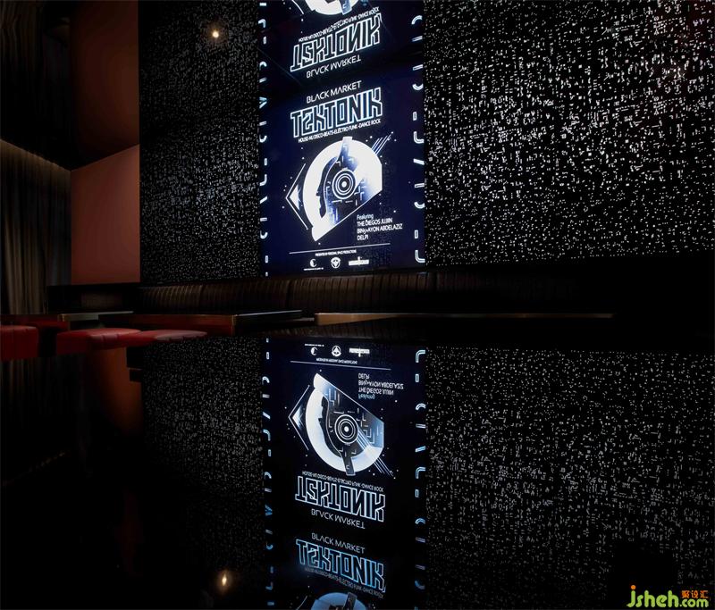 模糊空间的界限镜面不锈钢天花通过镜面与光的反射在视觉上达到了空间尺度的延展也让沉闷的工作情绪在此处得到逆转。属性上的模糊,让神秘成为了探索的欲望
