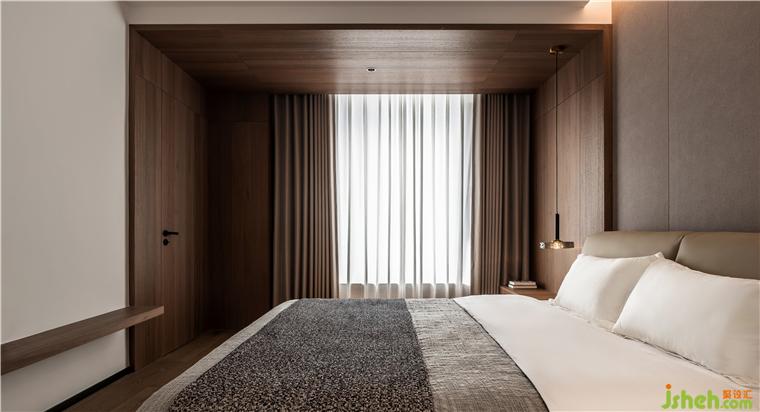房间设计简洁舒适,佛山保利云上别墅装修设计师精心挑选了檀木天然木纹,卧室区不大却最大限度地营造了空间质感,也就是设计团队所提倡的空间角落美学的营造。