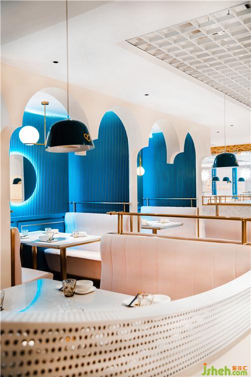 经过充分地探索与分析空间与品牌之间的关系,室内设计师最终提取拱形的意象作为贯穿整个空间的线索,以寻求艺术感和商业化两个元素的和谐共存。门头处花团锦簇的拱门设计,能瞬间俘获女性客户群体的芳心。罗列有秩的墙面造型,增加立体效果的同时,打破了大面积纯色所带来的单调和平淡,为整个外观带来不凡的视觉体验。