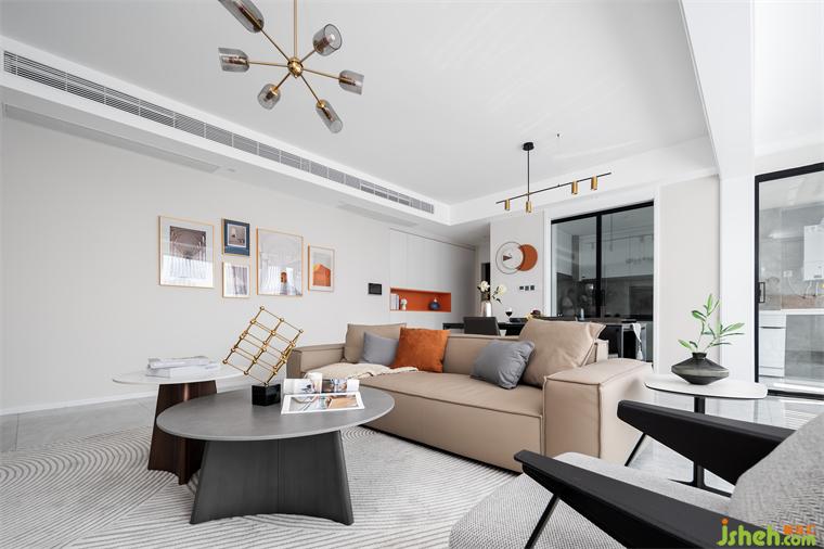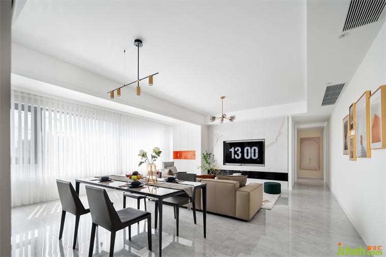 三室两厅一厨两卫舒适户型采光非常好,成都御龙府住宅设计整个空间视野开阔。相比较不足点就是主卧收纳问题,主卧原始空间不算太宽敞在加上业主后期也准备考虑要两个小宝宝,作为设计师需要为业主解决主卧收纳问题以及后期如何解决放婴儿车空间的问题。