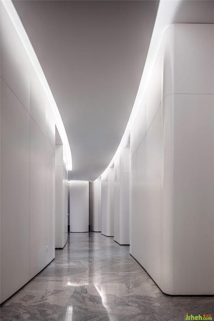 白色体块堆砌出狭长的视角,光线穿透变化着堆叠的体块,吸引来客在空间中不断的深入探索,也令人在墙垣之中获得自在与放松。