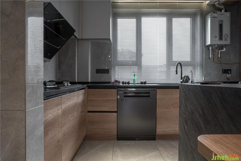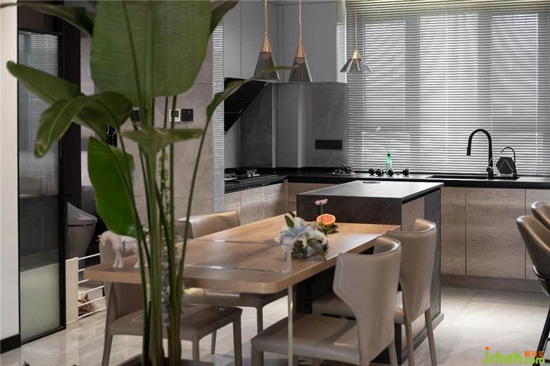 餐厅与客厅为一体的开放空间。整体选用柔和的原木色搭配质感黑,简约又温馨。