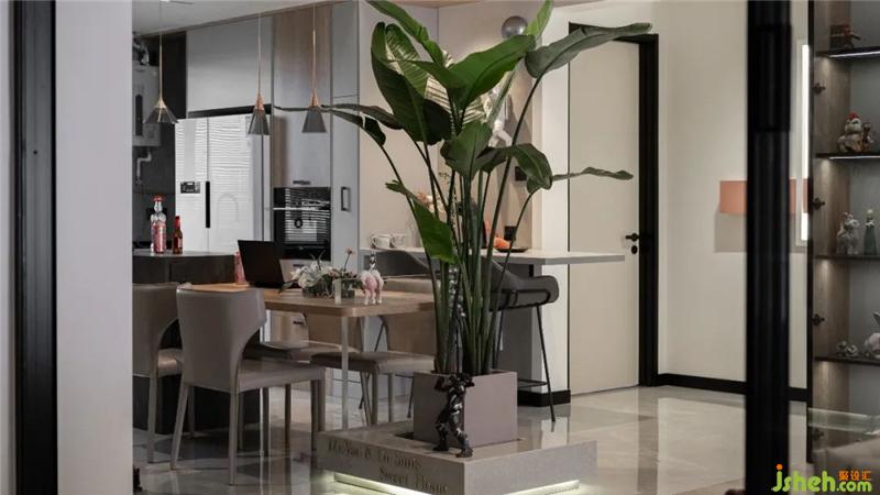 在满足了业主基本功能的需求下,在配色上延续了整个空间的配色模式,这样可以让开放空间更加协调统一。