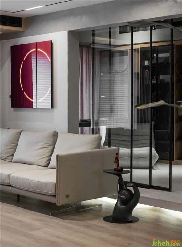 为了分割空间并保持视线通透,选择了极窄三联动推拉门,自动开关体验。