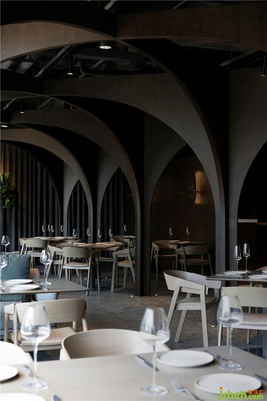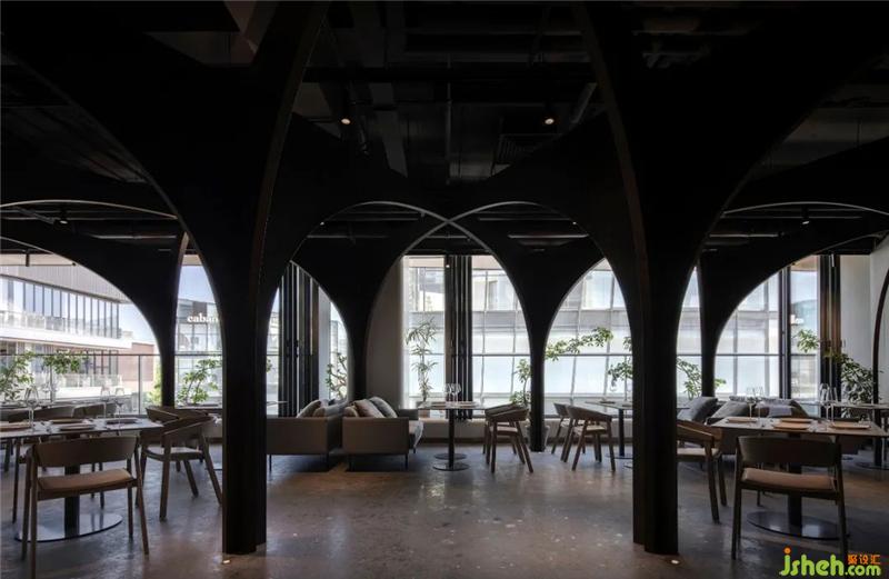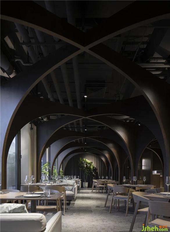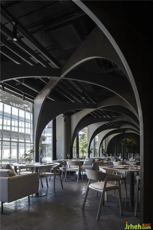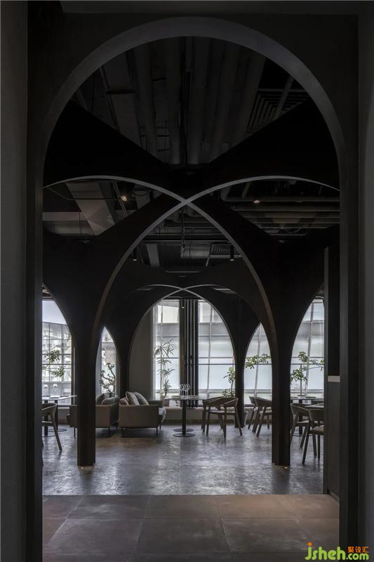 每个十字拱由地面向上生长,延伸至顶面交错至另一侧落下,创造出半私密的“茧”式空间环境。