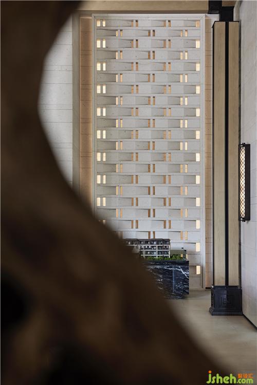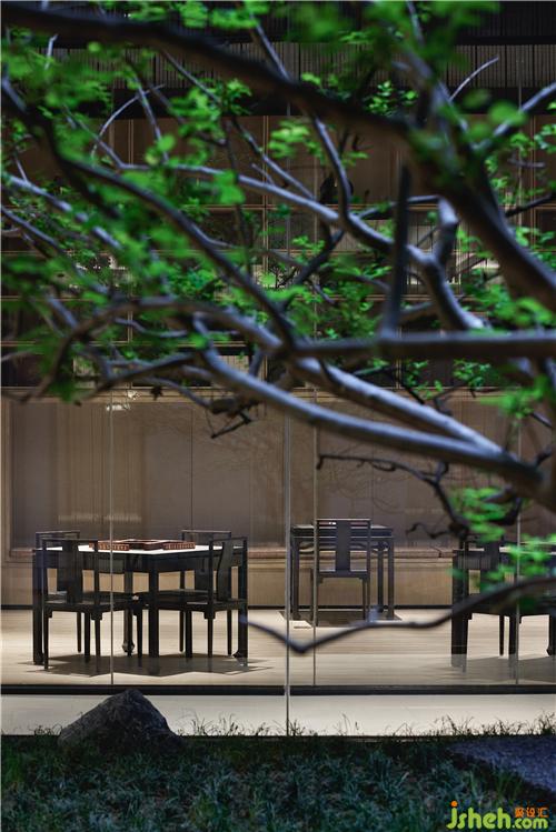 茶室隔窗辉光,空灵清妙。其内长桌后,是扇朦胧隔光玻璃轩窗,使得庭院花叶隔帘生辉。握杯静坐,俗念消融在那如月如鹤翼的淡白辉光里,物我两忘。