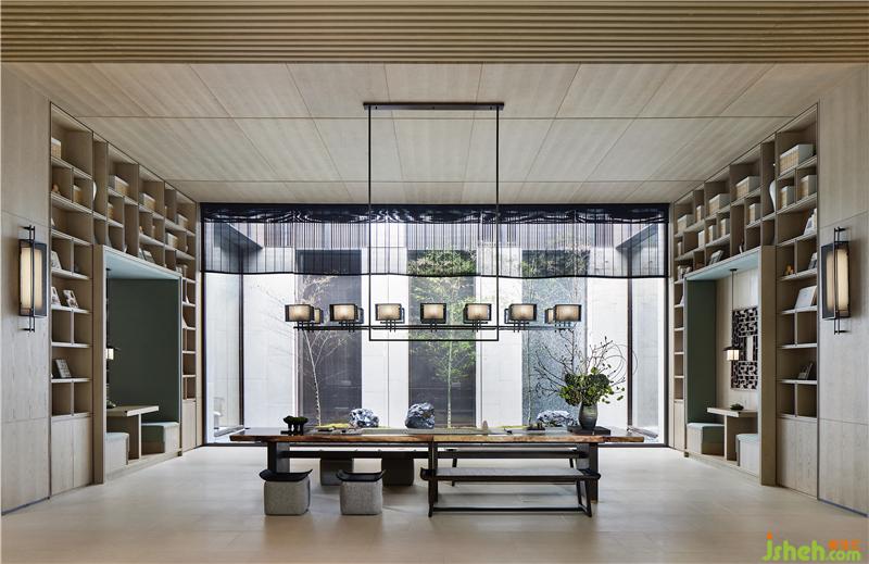 在阅读空间设计师注重形式与功能的结合,为空间注入一束光折射出坐落于繁华城市中的一座书岛。禅茶与文字汇聚成一叶扁舟,缓缓流淌在空间中去探寻…