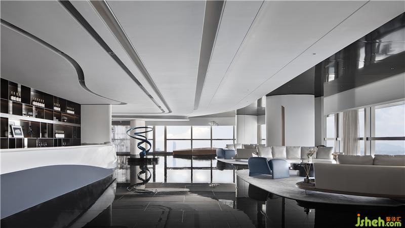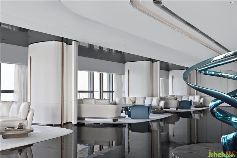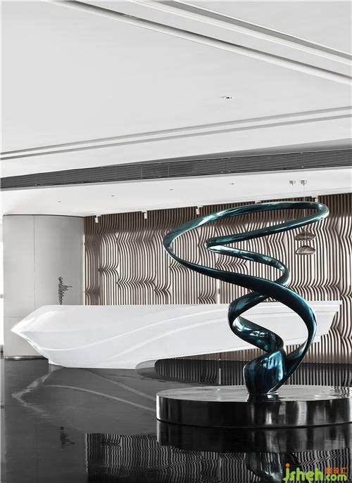 步入接待厅,空间以创意而简约的流线型艺术雕塑担起序章,现代主义美学及精尚的质感,定制出属于这个空间的设计语言。