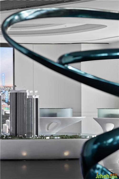 光虽静默无言,却是记录着一座城市的过去与未来,照见这座城市的内核。借落地窗为介质,沙盘通过弧形元素的设计与空间形成和谐统一。厦门售楼处设计透过艺术雕塑,营造时光流动的律动感,演绎着这座海上城市的人文风尚。
