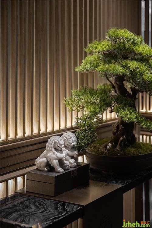 漫思MANS以格栅和“木”元素的“古”作为东方谦逊的美学语言,将东方谦和高雅的精神风貌纳入空间当中,手法上去繁化简,干净的线条使得整个空间呈现“礼”的秩序感,从而凸显东方形制的秩序与挺拔的视觉感。