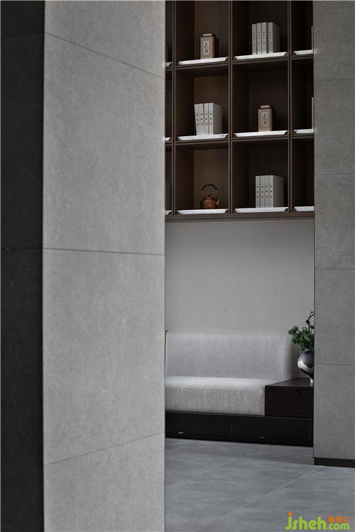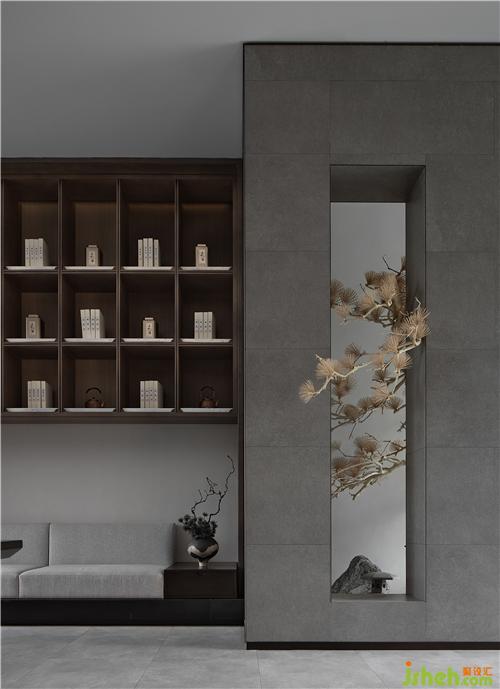 步入架空层,漫思MANS以立体解构层进及手法来表现,以低饱和度的色彩感受呈现空间美感。上海售楼处设计材质的肌理与禅意融合,形与意相得益彰,使其空间依稀有物,空而不空,从而生出"实景清而虚景现"格调。