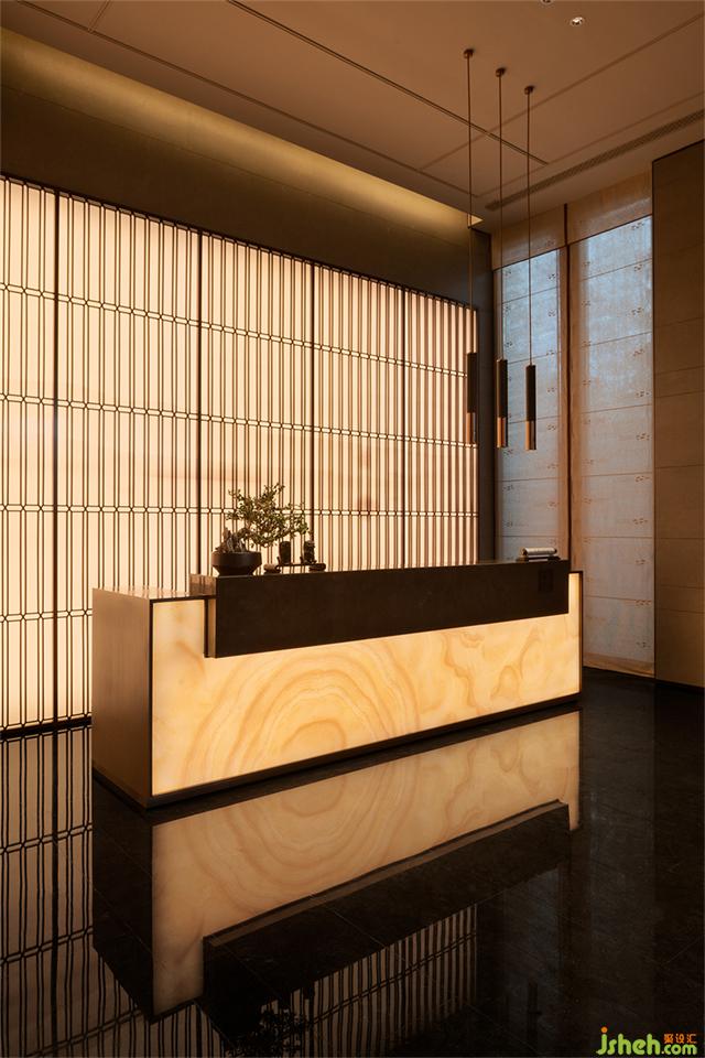 步入接待厅,格栅屏风渗透出影绰的远山层叠与水纹肌理的台面动静相衬,营销中心设计赋予流动的语言,增添不同层次的感官体验。游走于空间线条之中,无限延伸、扩展空间与艺术交织后呈现诗意氛围。