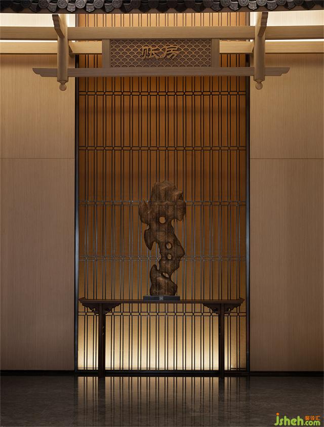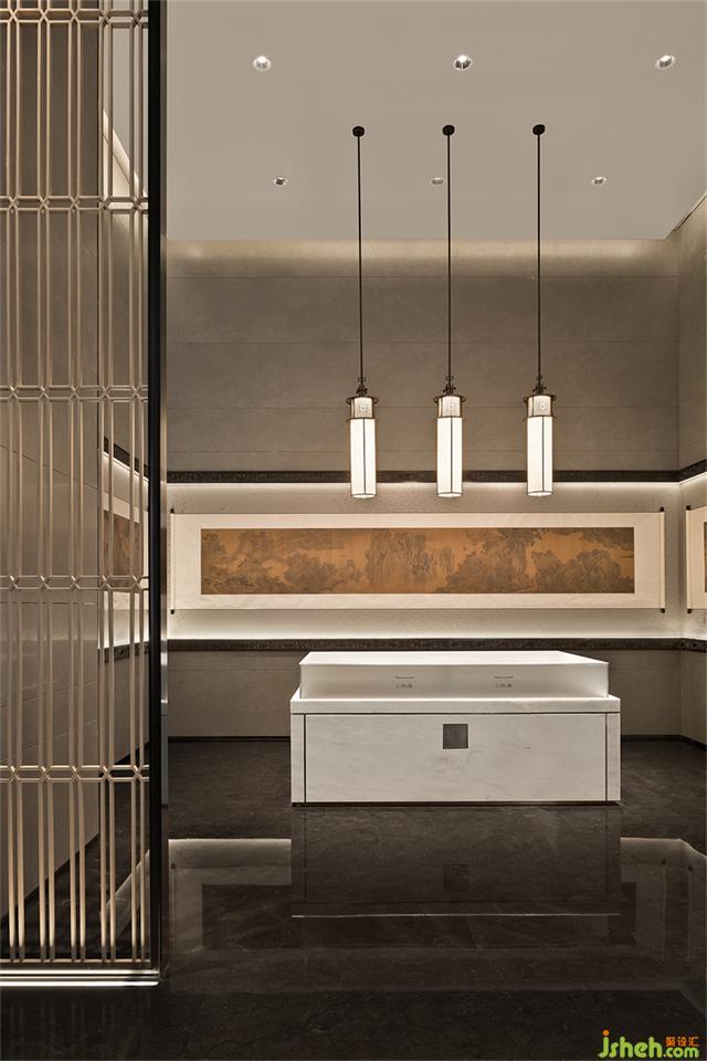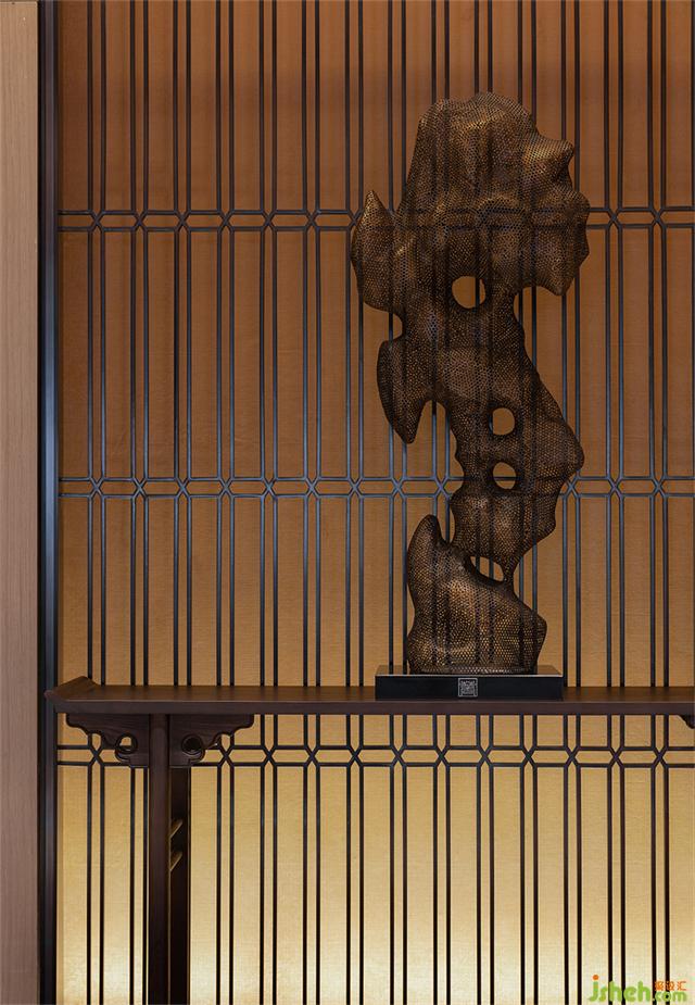 古铜金属网眼的太湖石艺术装置,营销中心设计凝聚着清俊灵动的东方神韵。人在其中,心绪朴素而无琐屑。