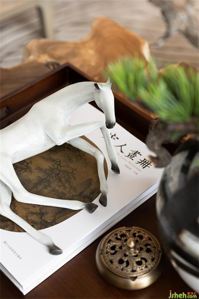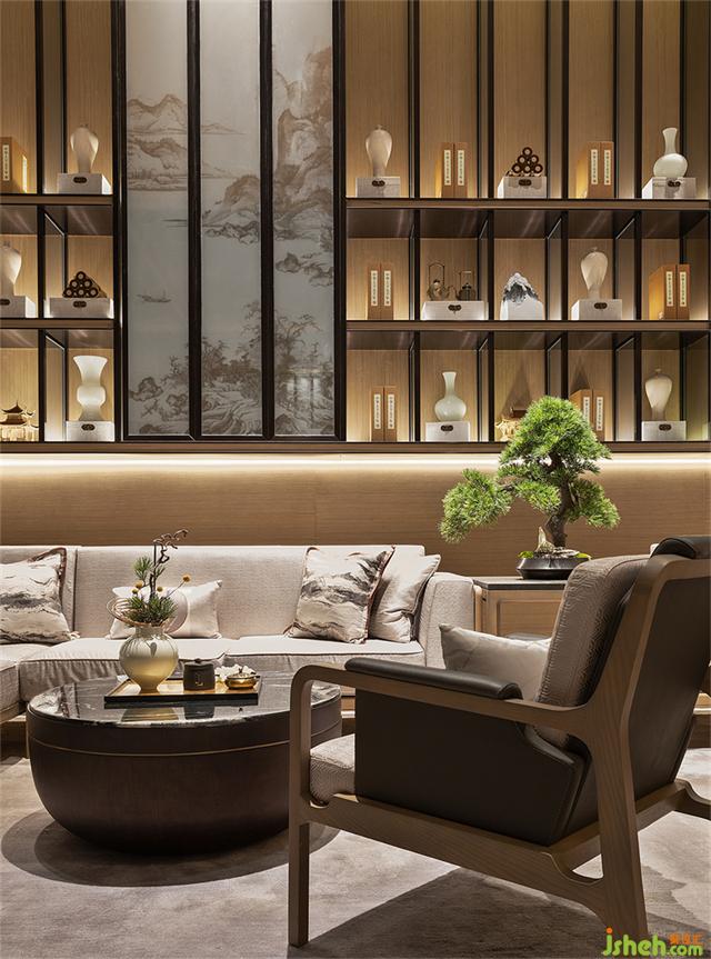 洽谈区延续了东方的礼序之美,空间上着重保持原木的素色和石材与其他材质清晰的纹理,营销中心设计使得空间平和安详,超然物外。