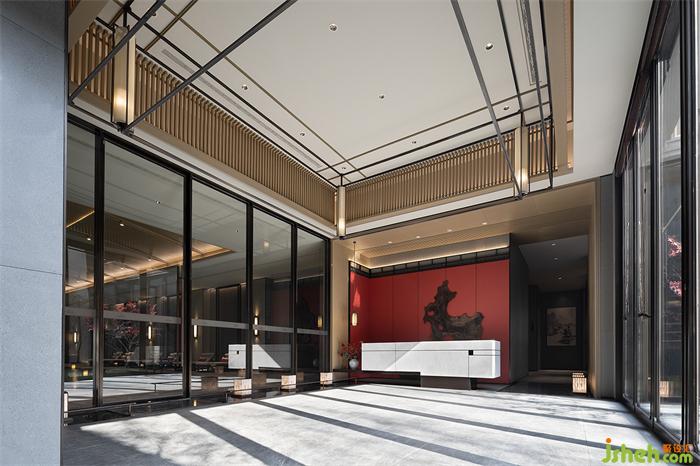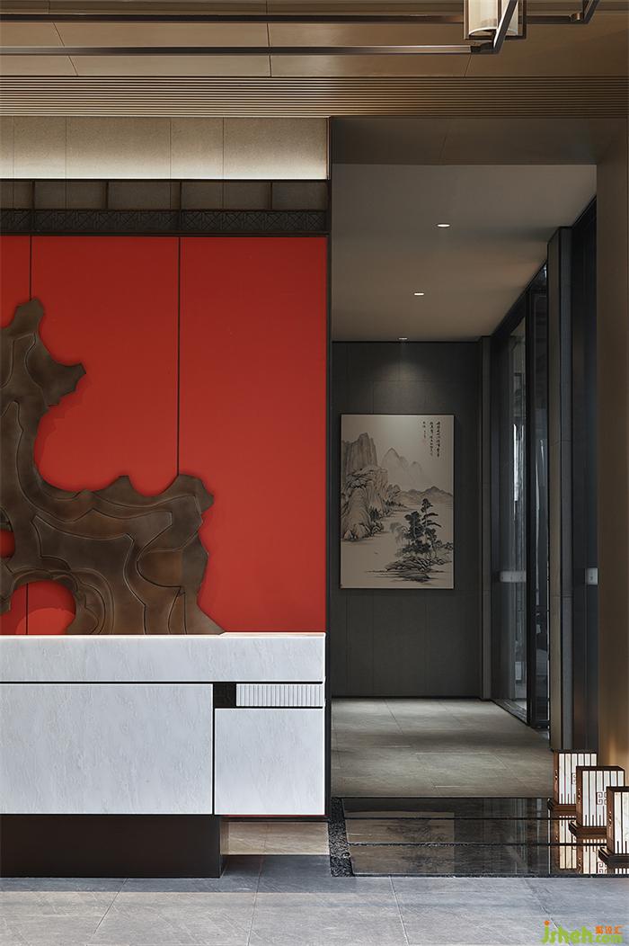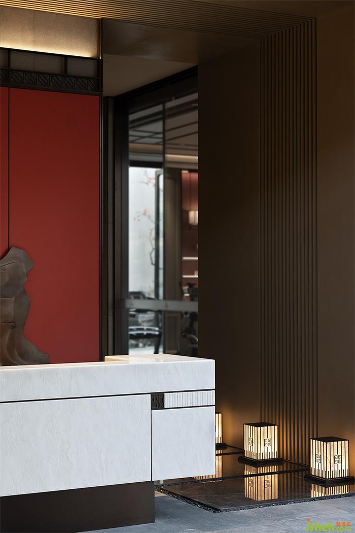 洽谈区的布局一分为二,隔而不断,局部采用红色点缀激发活力,其格调古朴高雅。营销中心设计临窗而设的区域打通室内与户外景致的视觉联结使之更加开敞。露台区域弱化了区域间的边界又保留独立性,构建整体空间疏密有致而又相互渗透。和煦日光,将清幽写意娓娓道来。