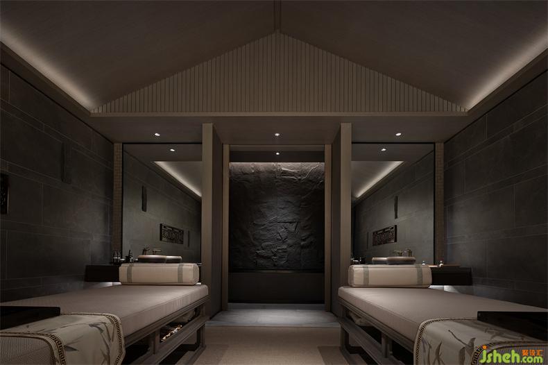 SPA区依然延续整体设计基调,加上简约流畅的线条分割,室内设计师使SPA区成为一个静谧、温暖、舒适的休闲空间。自然,朴实,色彩深沉,具有东方雅韵,灯光的变化灯光给空间增加了平静私密,打造一个全然放松身心的场所。