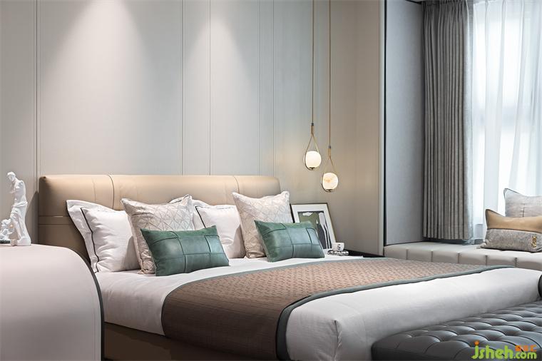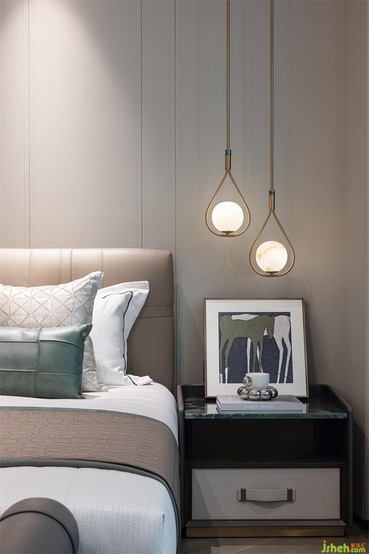 主卧空间的设计彰显居住者本人的精神追求。不追求多样的缤纷色彩,样板房设计低调的素朴色彩反映居者对于精神向度的追寻。