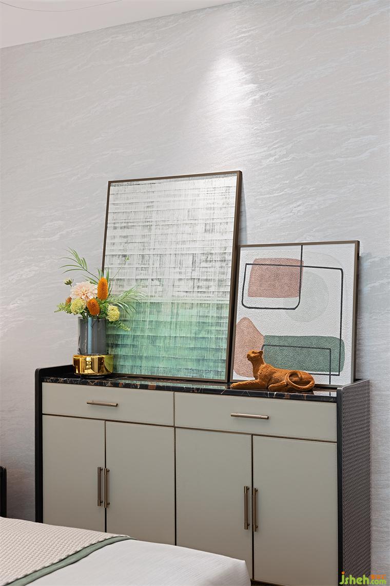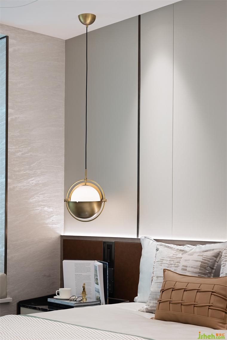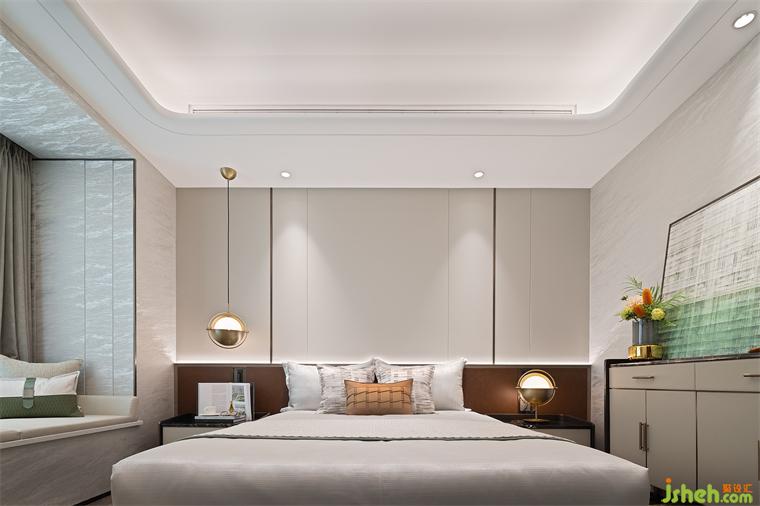 次卧静谧舒适,优雅的暖色调,舒适的材质,自然的柔和光线,样板房设计简约的线条增加了空间视觉层次,同时丰富整体空间的现代意象。