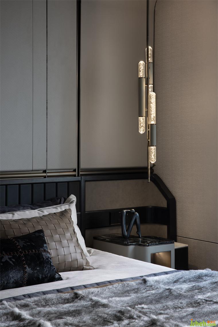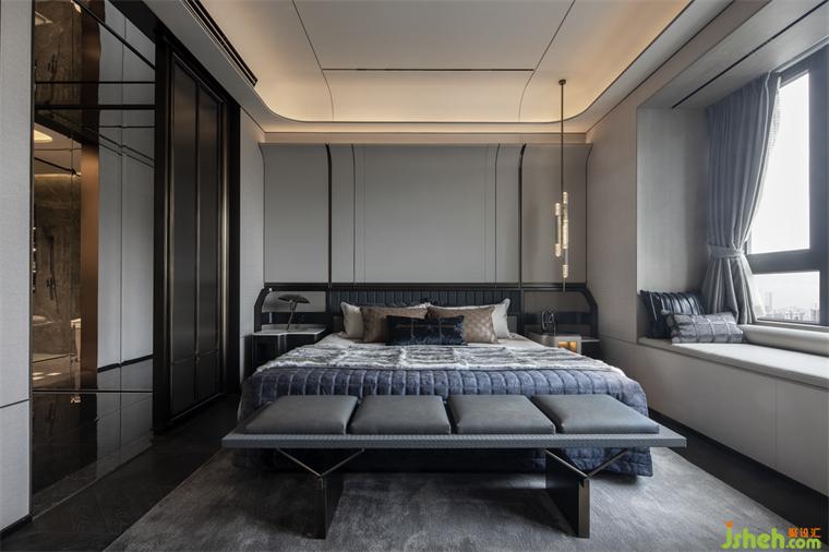 Only meditation can feel the beauty of life. The master bedroom magnifies the space scale and visual perception as much as possible in meeting the function and comfort. On the basis of the continuation of the overall style, the combination of different color shades, materials, texture, soft bedding and carpets shows a gradual hierarchical relationship, and advanced brings peace and stability to the heart. The open floor-to-ceiling windows let nature blend into the interior, and reveal the high quality in the quiet.