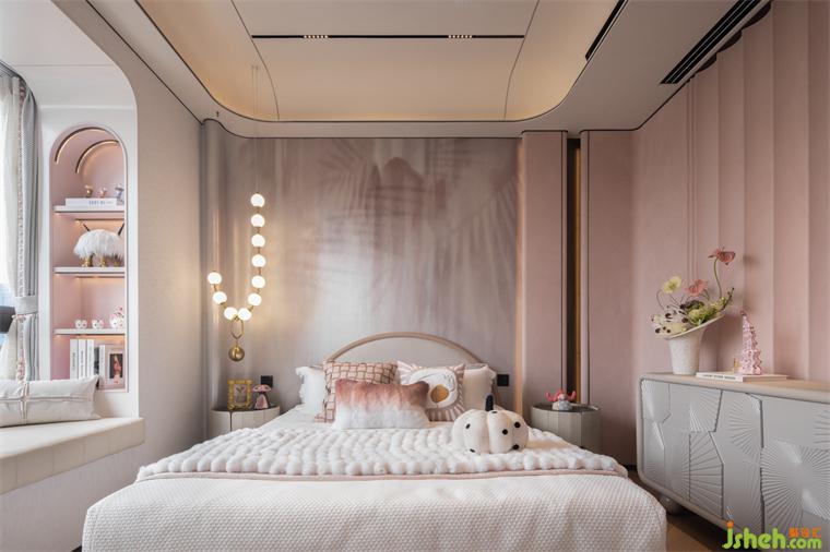 The girls' room features a harmonious layout in the functional area, matching with the cherry pink tone tinting strokes, highlighting the warm and romantic atmosphere of the girls' room, giving the girls' room a kind of enlightenment of aesthetic imagination, and setting off the children's authenticity, purity and beauty.