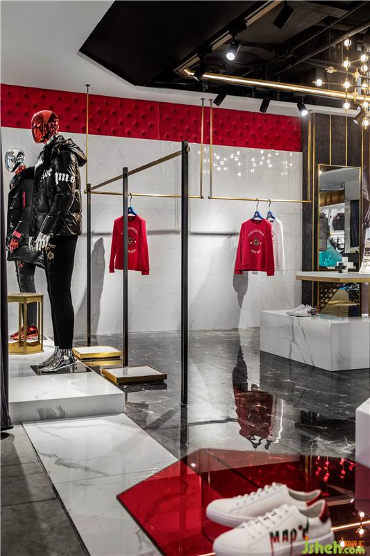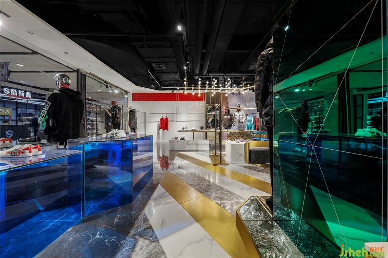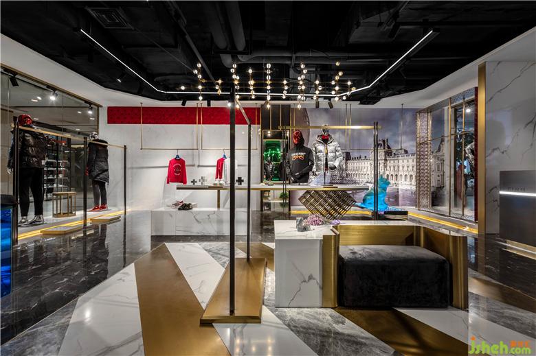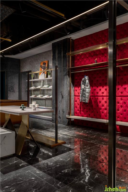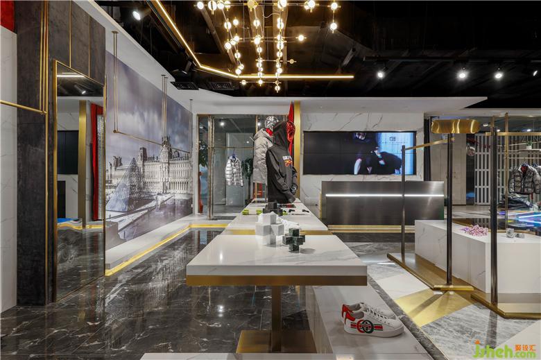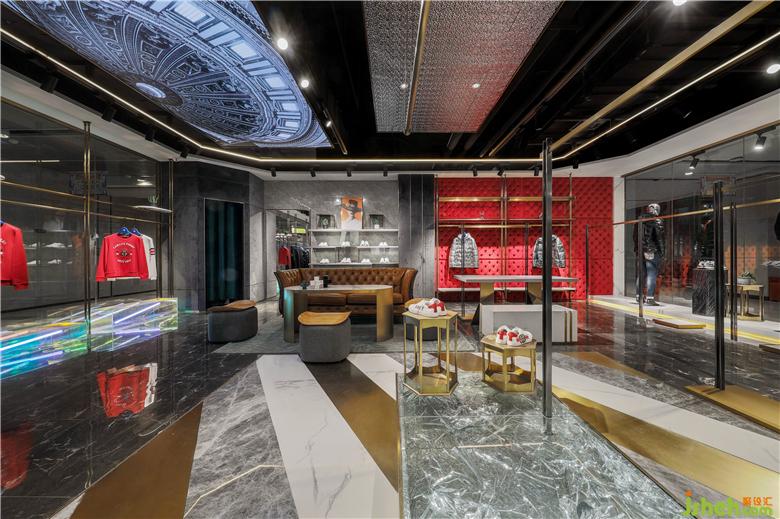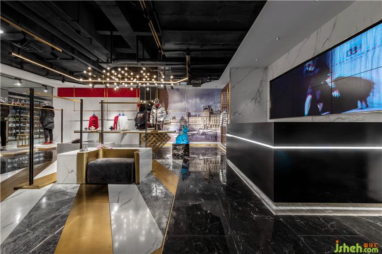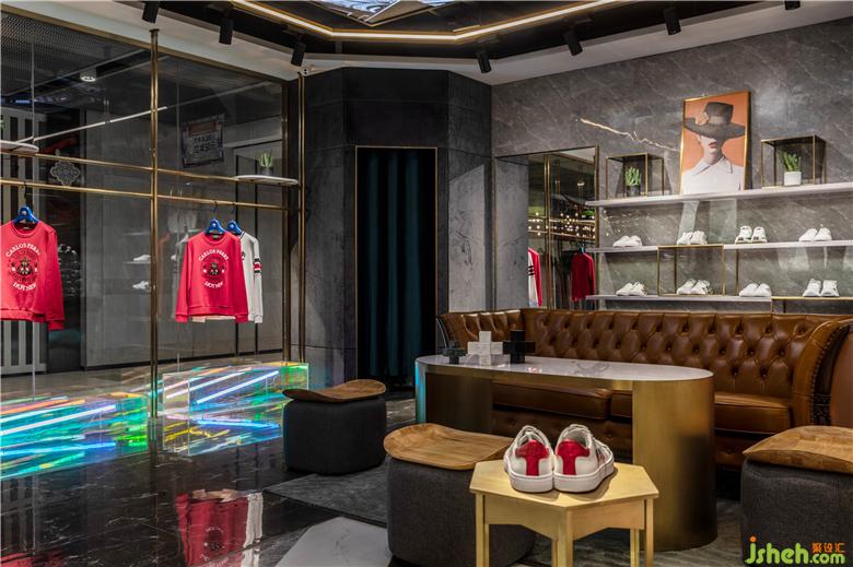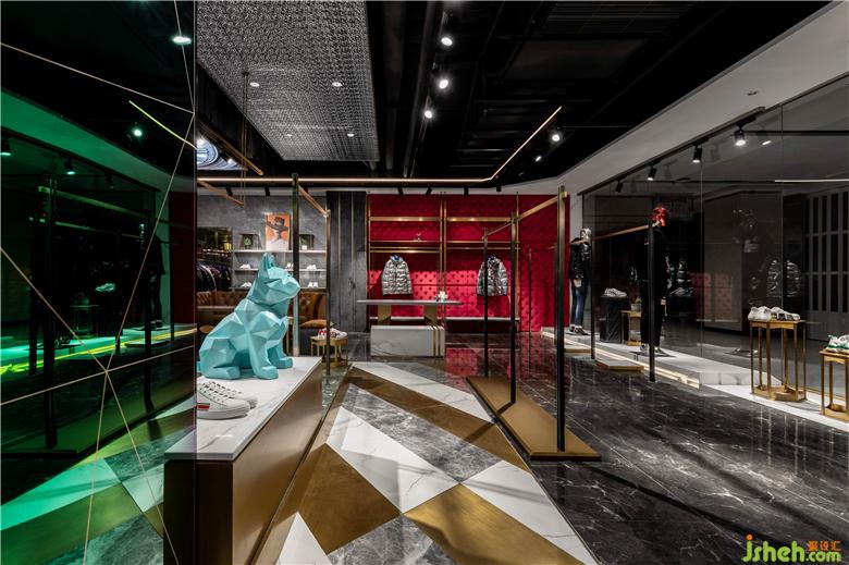 主要材料:石材、水波纹不锈钢、清水蓝不锈钢、有色玻璃、软包