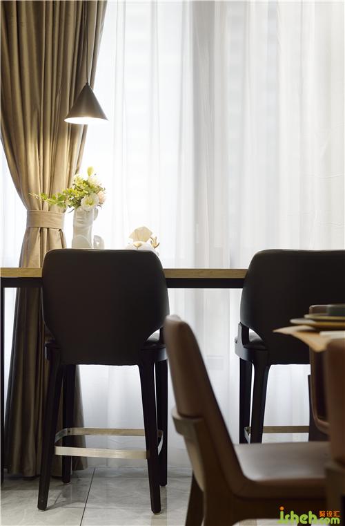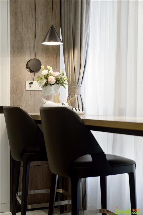 吧台也在厨房的出门处,这样业主在厨房里做饭时,孩子可以在这里写作业,有学习上的问题,家长方便指导监督,就不用房间厨房的来回跑了。