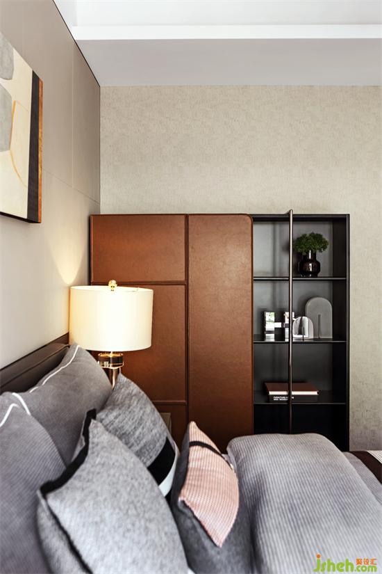 放置一旁的深棕色边柜,兼具展示与收纳功能,简约的外观,尽显利落之美,一侧展示区可随喜好摆放上绿植、书籍、艺术装置等小物品,装点好心情,广州亚运城精装样板房设计为寻常的生活带来持续的惊喜感。