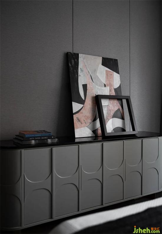 床头皮革面板直白利落的线条和细腻的纹理,与柔软的床品织物相互呼应,中洲青岛半岛城邦样板房设计在烟灰色衣柜的陪衬下更显质感,于细微之处,展现美好居所的动人之处,在方寸之间,尽享曼妙时光。