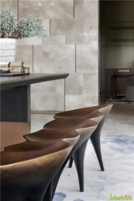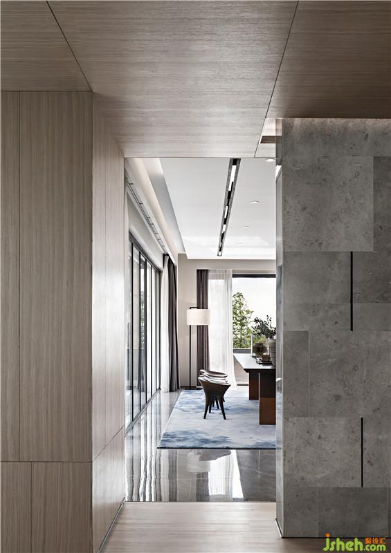 除了浑然一体的书画长案和宛如雕塑般的木椅,没有一分过度的布置,配以简约明快的空间线条和大理石材质的素雅本色,“天然去雕饰”的设计理念让建筑内外的界线变得模糊,但又为身处其中的艺术家提供了思考创作所必须的静谧。