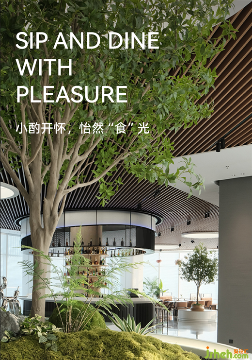 转入二楼,白日里的轻食餐厅与夜幕中的微醺餐吧,在空间中分时共存,丝滑切换,成为渗入生活的袅袅烟火气。选个晴好天气,邻窗瞰江岸,佳肴美景别有一番风味;夜幕降临,开启特调鸡尾酒的至臻时刻,久久回味生活的甘醇与意趣。