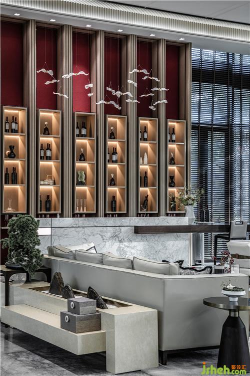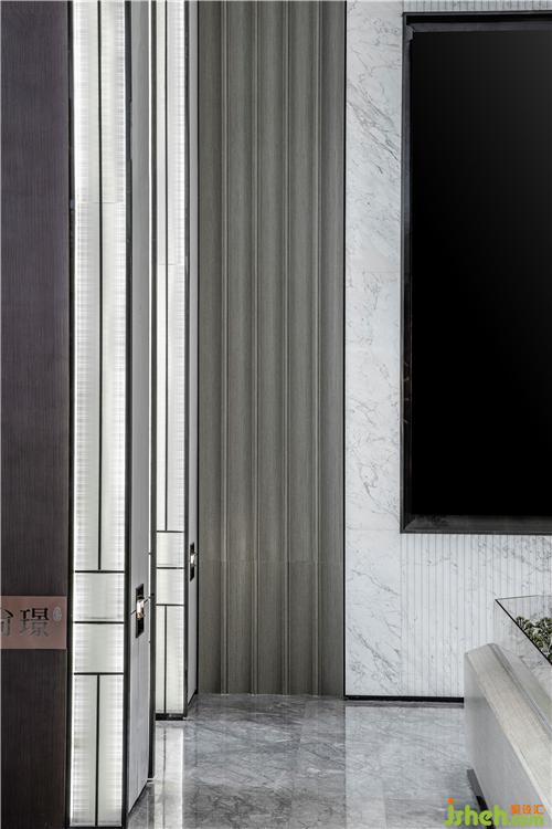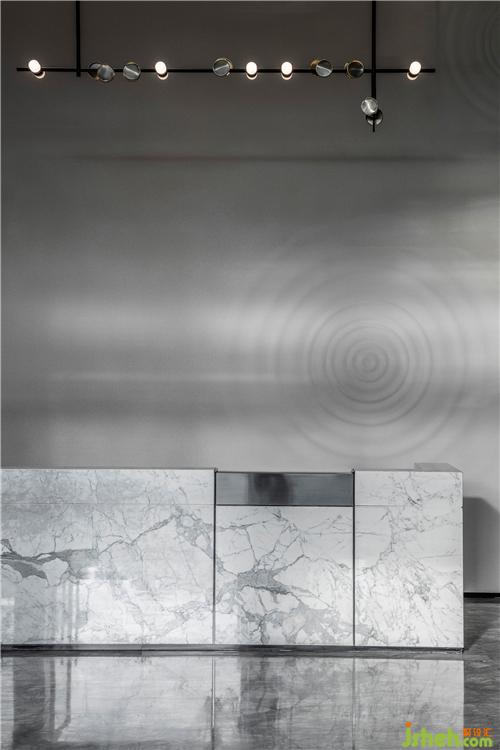 主要用材:印记灰大理石、喜鹊灰大理石、水纹雕刻大理石、木饰面、烤漆板、木地板、墙布、拉丝不锈钢、波浪金属板、艺术玻璃